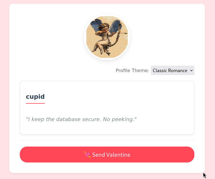 upon looking all the other profiles, this profile seems to be something useful, let’s send the valentine request
