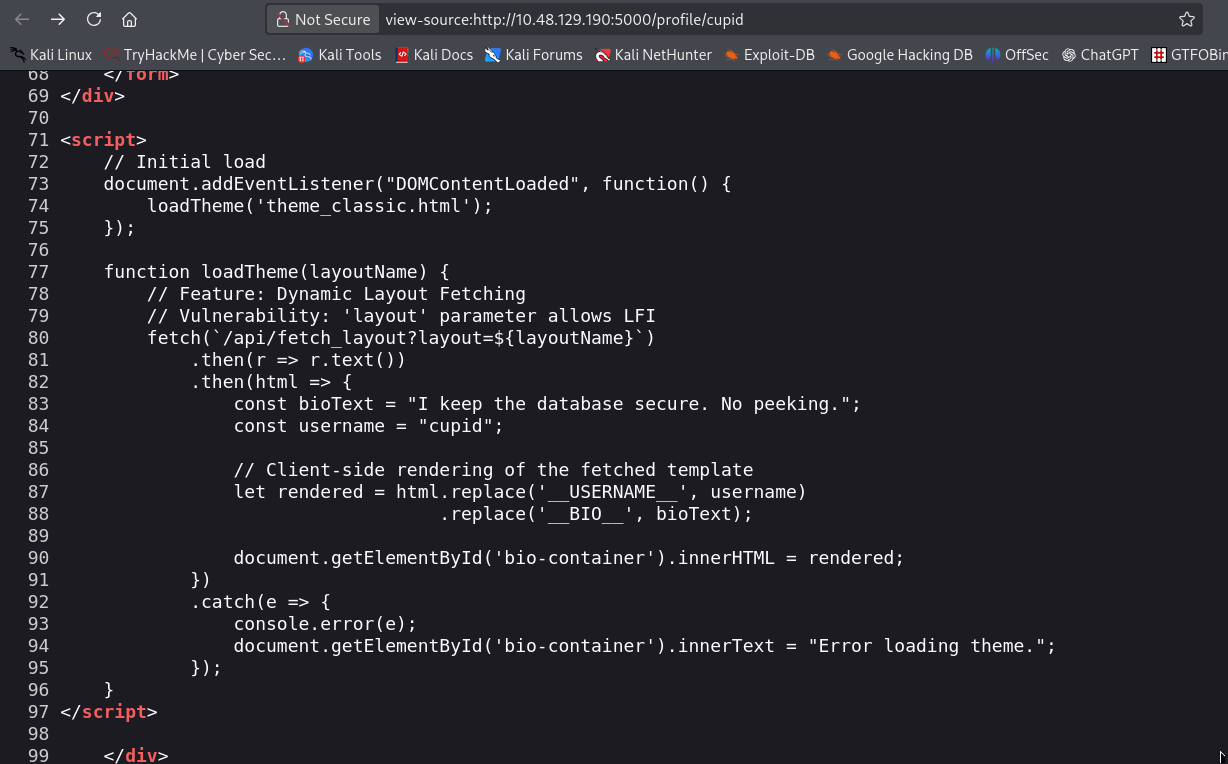 upon checking the source code of the website we can see that there is a comment saying that layout allows LFI