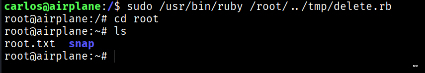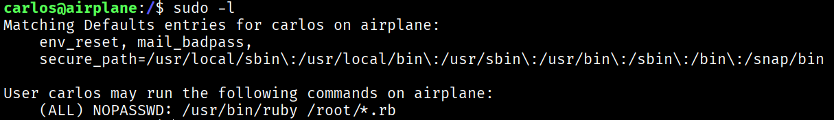 we can observe in sudo -l that the ruby file must be ran from the /root folder.